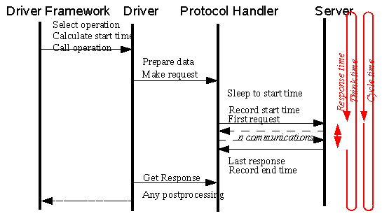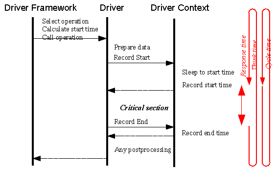 All operations have a critical section for which time is measured. For operations measuring network responses it is from the time the request is sent to the time the response is received. The non-critical section is the time used for preparing the data and valiudating the response. In non-network operations this time needs to be defined by the provider of the benchmark driver.